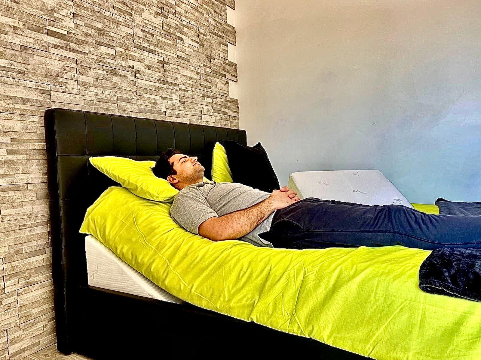 BENESSERE: adatto a chi sofre di bruciori allo stomaco, reflusso gastroesofageo, congestione sinusale, apnea notturna, dolori muscolari al collo e alle spalle, dolori lombari, problemi alla circolazione sanguigna alle gambe, ginocchia e caviglie. Sollevando il busto, le gambe o entrambi, grazie alla forma del cuscino si va ad agire dove c’è il problema.