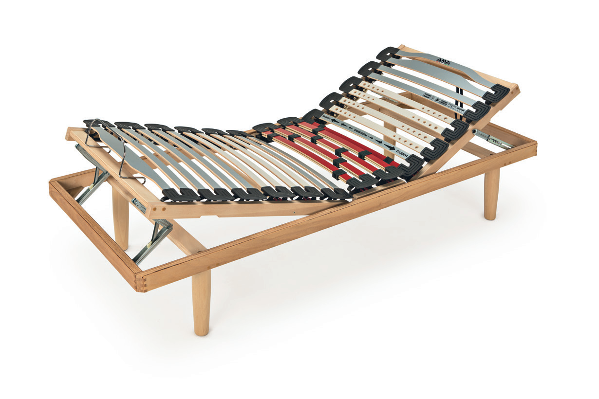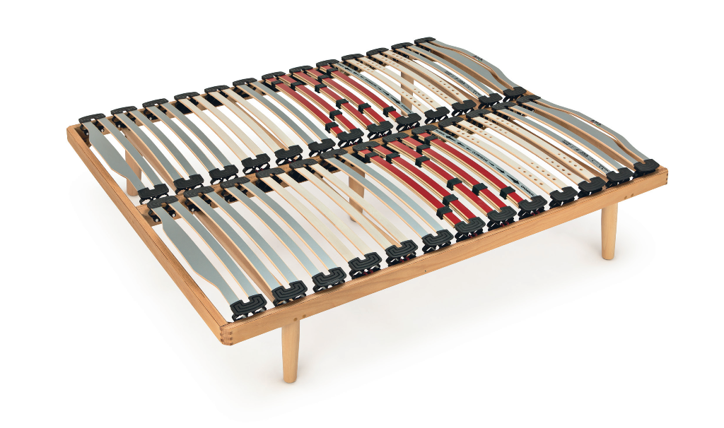 Le gambe della rete a doghe sono montate su traversi NO-FLEX in modo da eliminare la flessione a centro rete detta anche “effetto amaca”.
