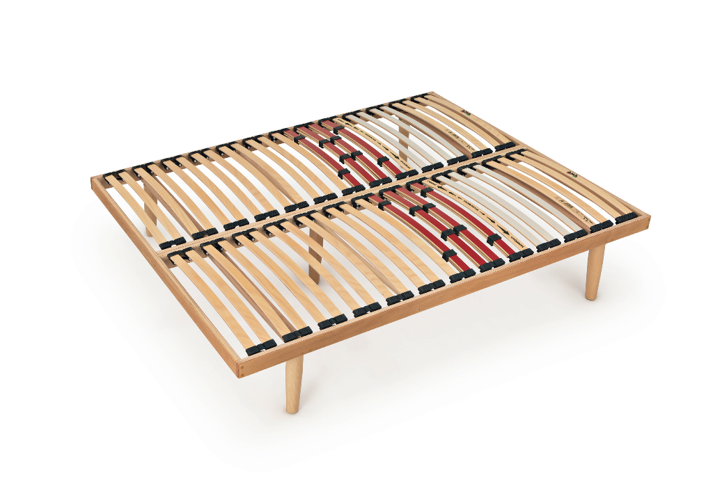 Le gambe della rete a doghe sono montate su traversi NO-FLEX in modo da eliminare la flessione a centro rete detta anche “effetto amaca”.