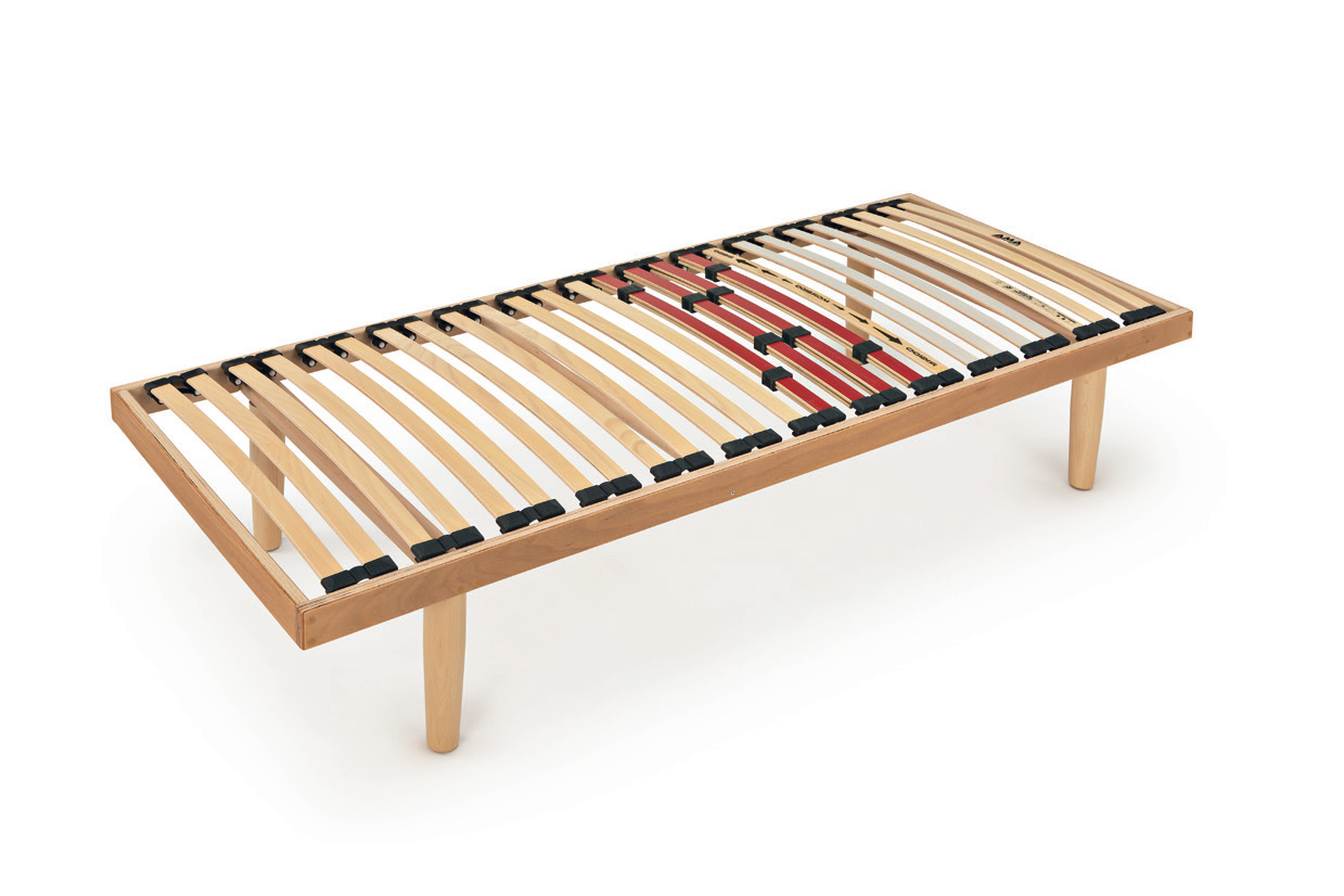 Le gambe della rete a doghe sono montate su traversi NO-FLEX in modo da eliminare la flessione a centro rete detta anche “effetto amaca”.